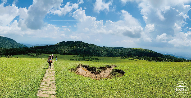 第二段起點為面天坪涼亭,可由二子坪遊客服務站進入,經大屯西峰、大屯南峰 、大屯山觀景台、小油坑遊客服務站;共可收集拓印柱:走、縱、大。健行長度約12公里。步行中,會經過竹子湖,有機會參與海芋季(3-4月)或繡球花季(5-6月),欣賞到美麗的花景,除此之外,大屯群峰擁有許多挑戰性地形,例如攀繩路段,想要練腿的各位不容錯過!