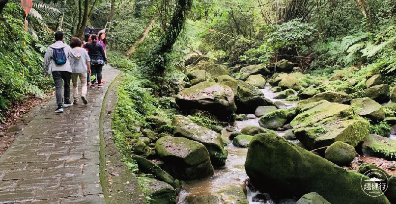 第一段起點為捷運關渡站,經忠義山步道口(楓丹白露)、貴子坑拓印亭、清天宮、面天坪涼亭、二子坪遊客服務站;共可收集拓印柱:北。健行長度約13公里。沿途有機會欣賞關渡夕照並漫步於竹林步道,最後經過的二子坪步道,為臺灣三大賞蝶景點之一,同時也與阿里山、太魯閣並列台灣十大景觀步道,相當值得一遊。